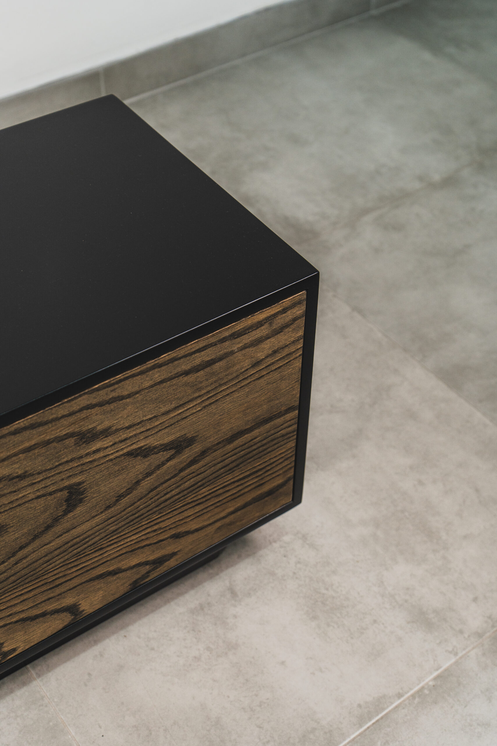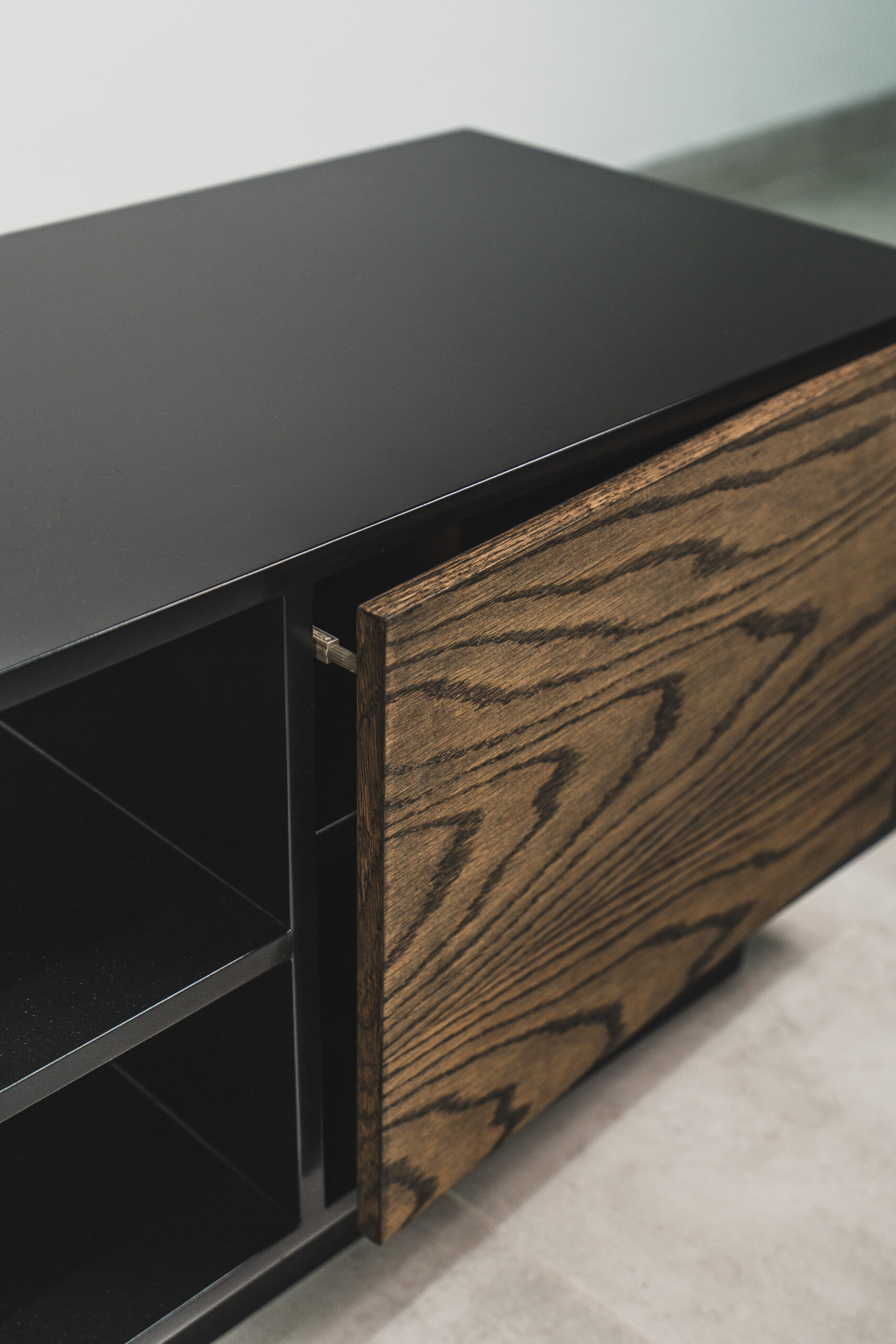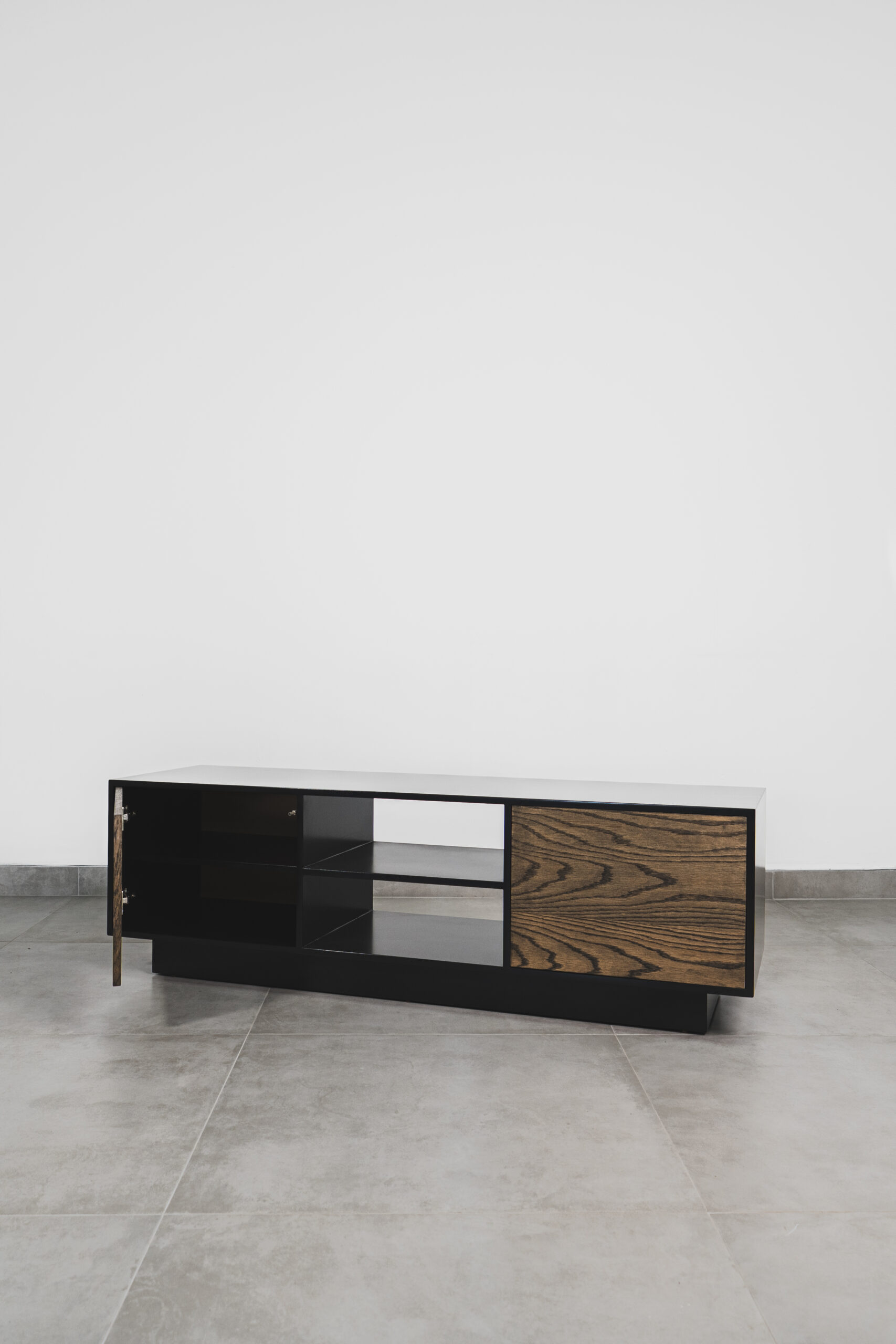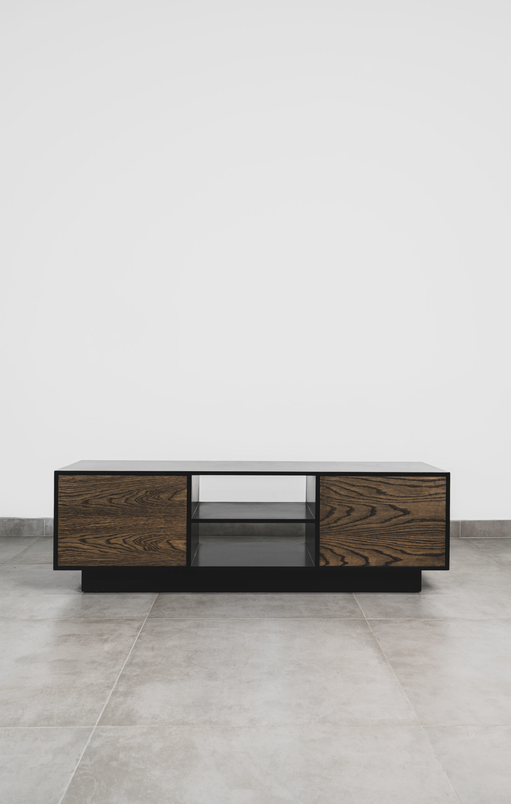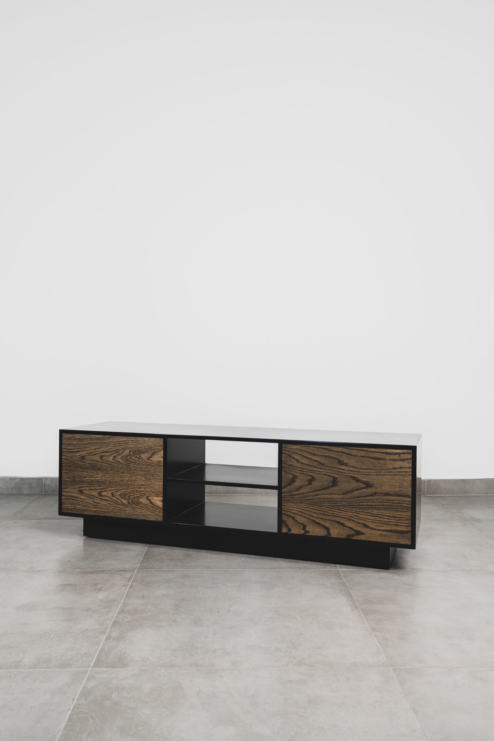 Featuring two cupboards with push-to-open doors, an open centre shelf, and a sleek floating base, this TV unit brings a refined, modern touch to your living space.