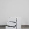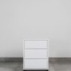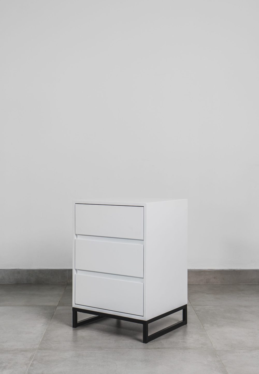 Elevate your bedroom decor with our elegant White Bedside Table, complete with three convenient drawers and a contemporary black steel base. Designed for both style and functionality, this chic piece adds a touch of sophistication while providing ample storage space. Organize your essentials in style and transform your bedroom into a haven of modern luxury.